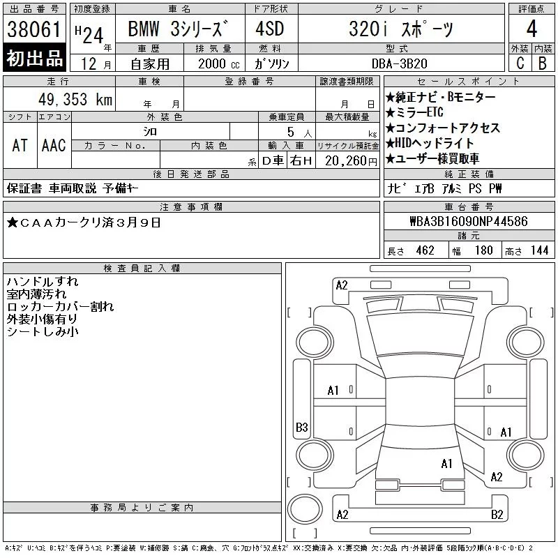 BMW 3-Series с аукциона Японии CAA Chubu лот № 38061