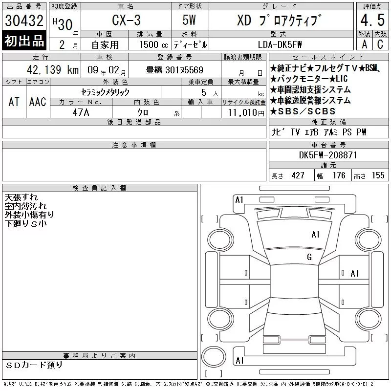 Mazda CX-3 с аукциона Японии CAA Chubu лот № 30432