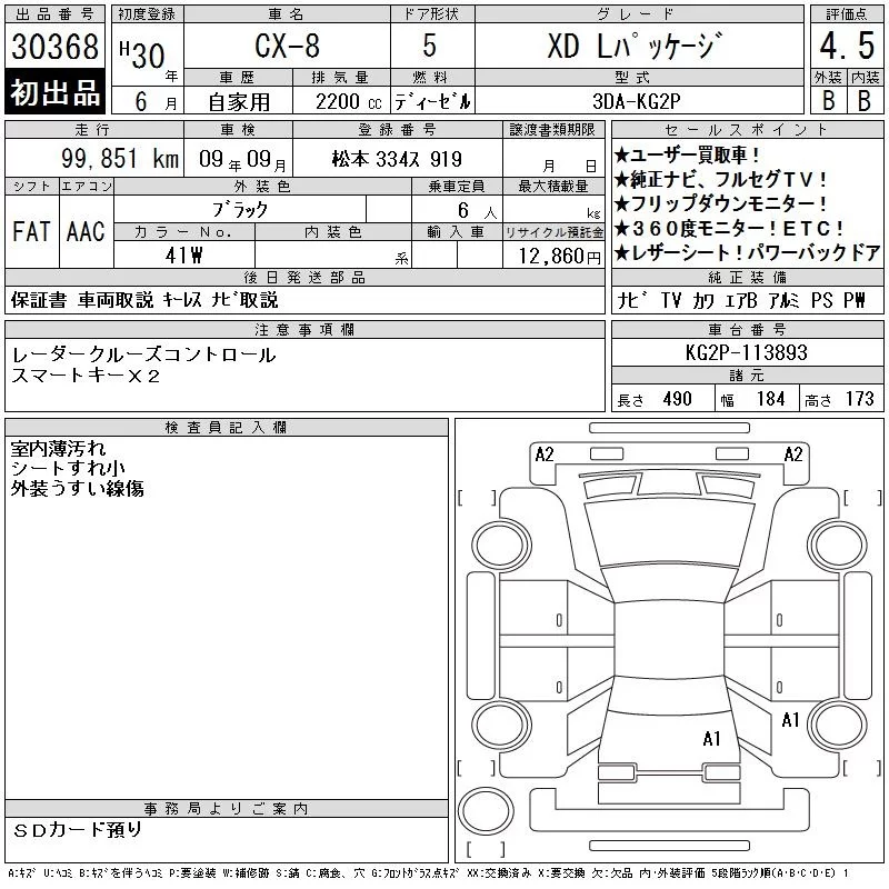 Mazda CX-8 с аукциона Японии CAA Chubu лот № 30368