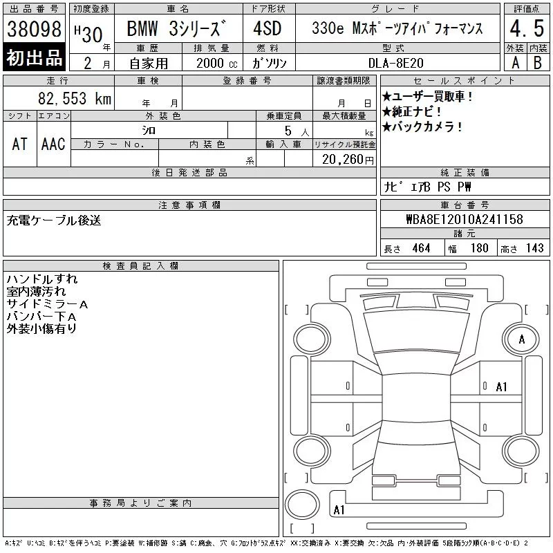 BMW 3-Series с аукциона Японии CAA Chubu лот № 38098