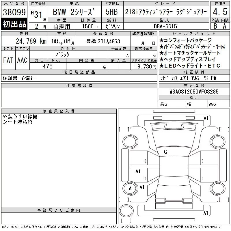 BMW 2-Series с аукциона Японии CAA Chubu лот № 38099