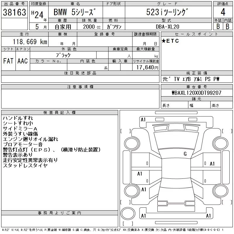 BMW 5-Series с аукциона Японии CAA Chubu лот № 38163