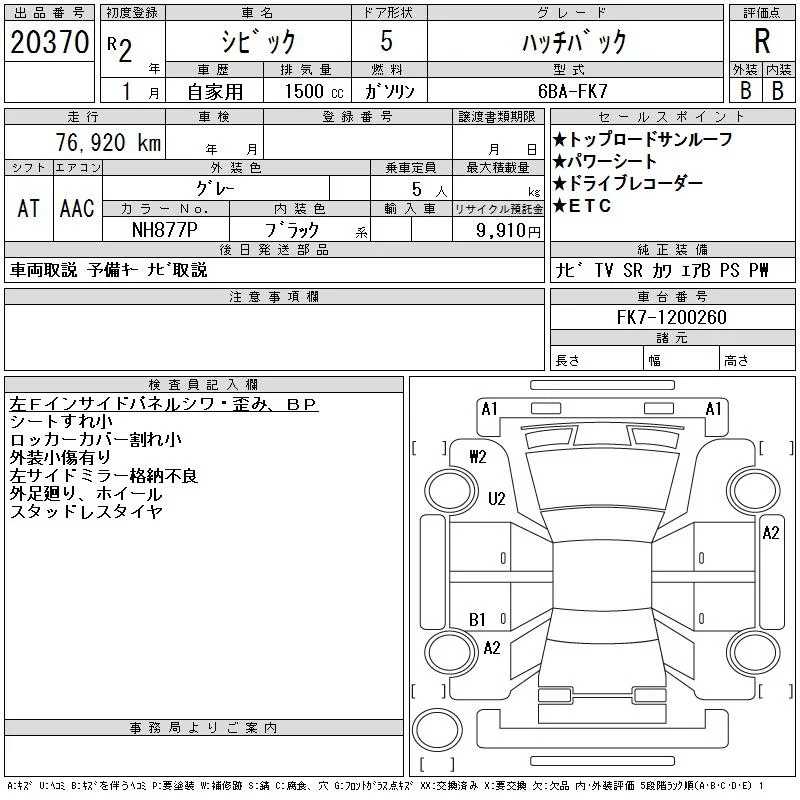 Honda CIVIC с аукциона Японии CAA Chubu лот № 20370