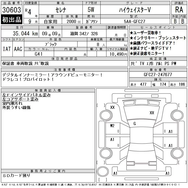 Nissan SERENA с аукциона Японии CAA Chubu лот № 30603