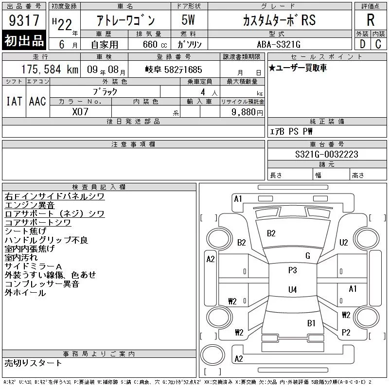 Daihatsu Atrai Wagon с аукциона Японии CAA Chubu лот № 9317