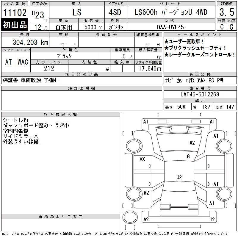 Lexus LS с аукциона Японии CAA Chubu лот № 11102