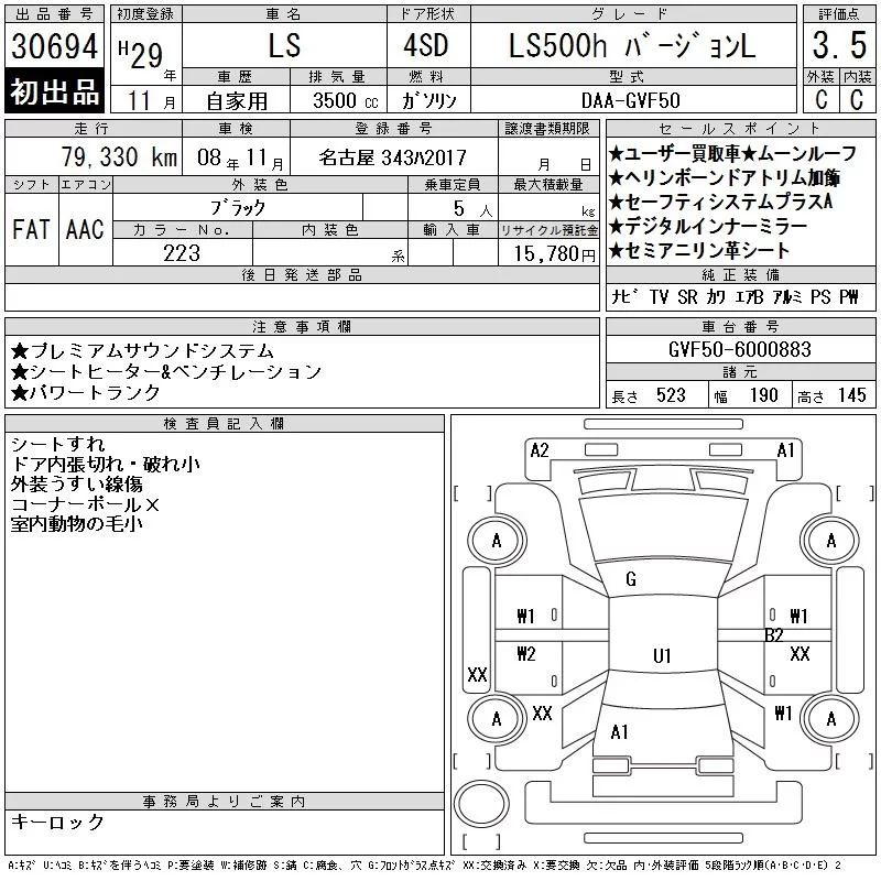 Lexus LS с аукциона Японии CAA Chubu лот № 30694