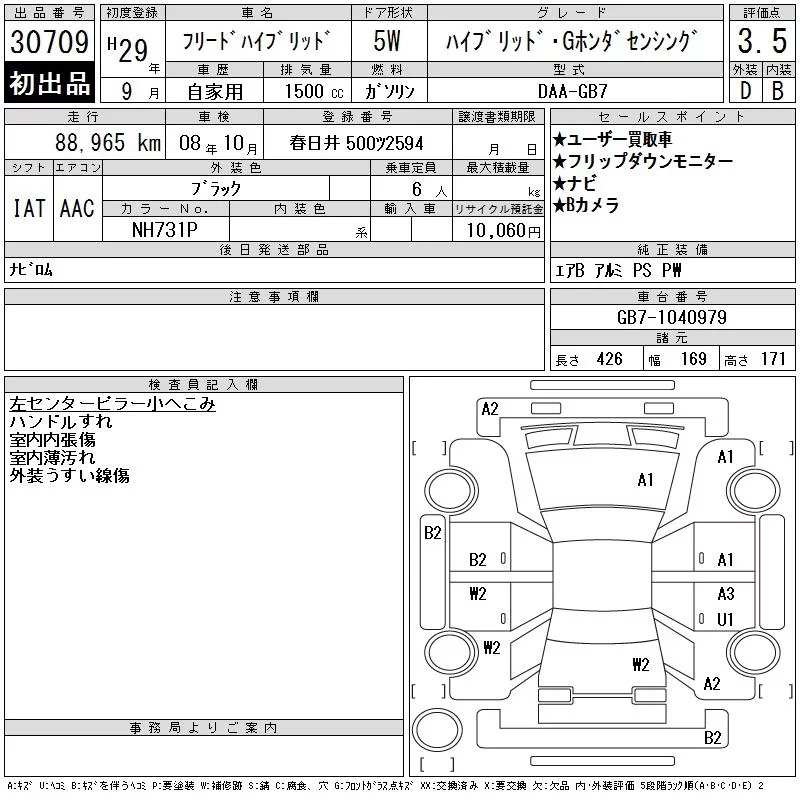 Honda FREED с аукциона Японии CAA Chubu лот № 30709