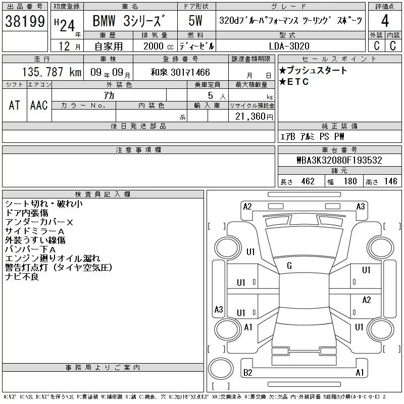 BMW 3-Series с аукциона Японии CAA Chubu лот № 38199