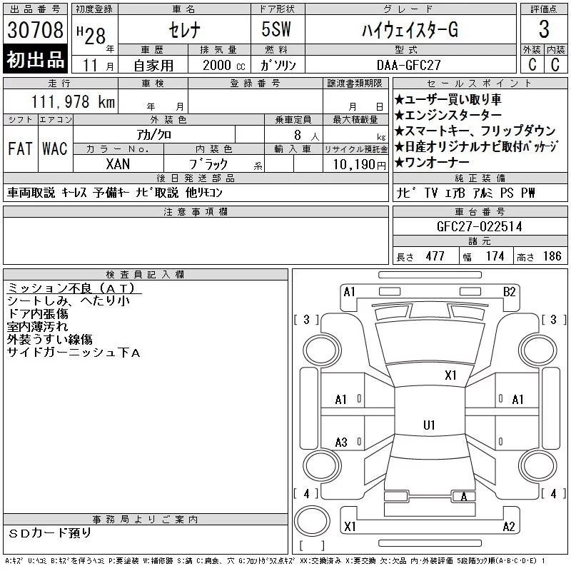 Nissan SERENA с аукциона Японии CAA Chubu лот № 30708