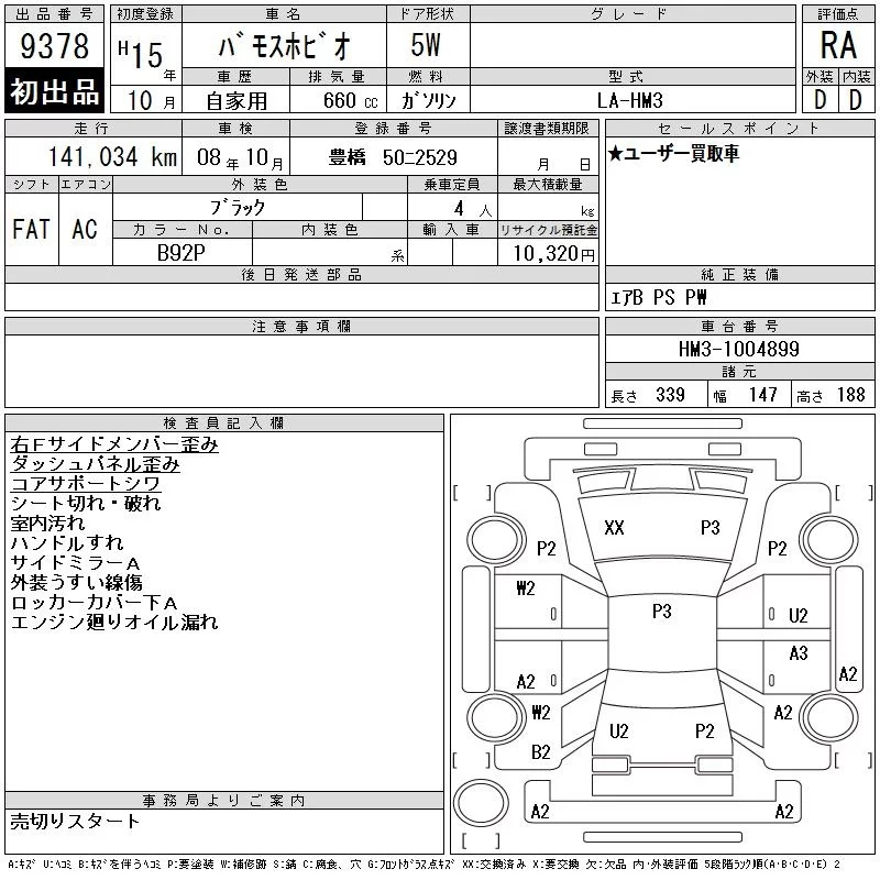 Honda VAMOS с аукциона Японии CAA Chubu лот № 9378