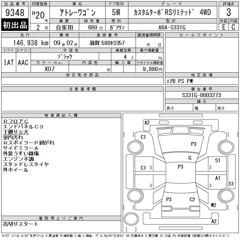 Daihatsu Atrai Wagon с аукциона Японии CAA Chubu лот № 9348
