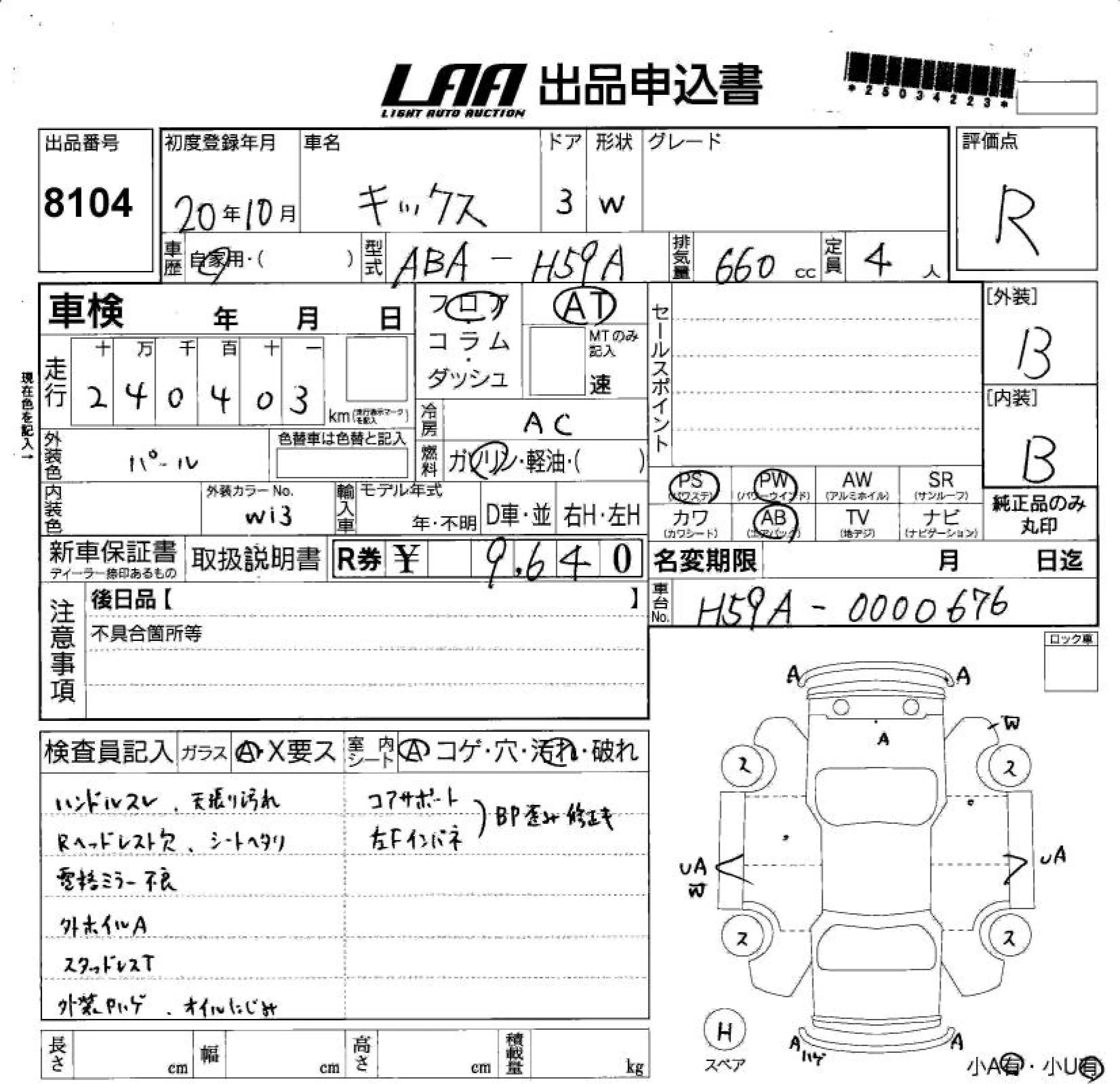Nissan KIX с аукциона Японии LAA Shikoku лот № 8104