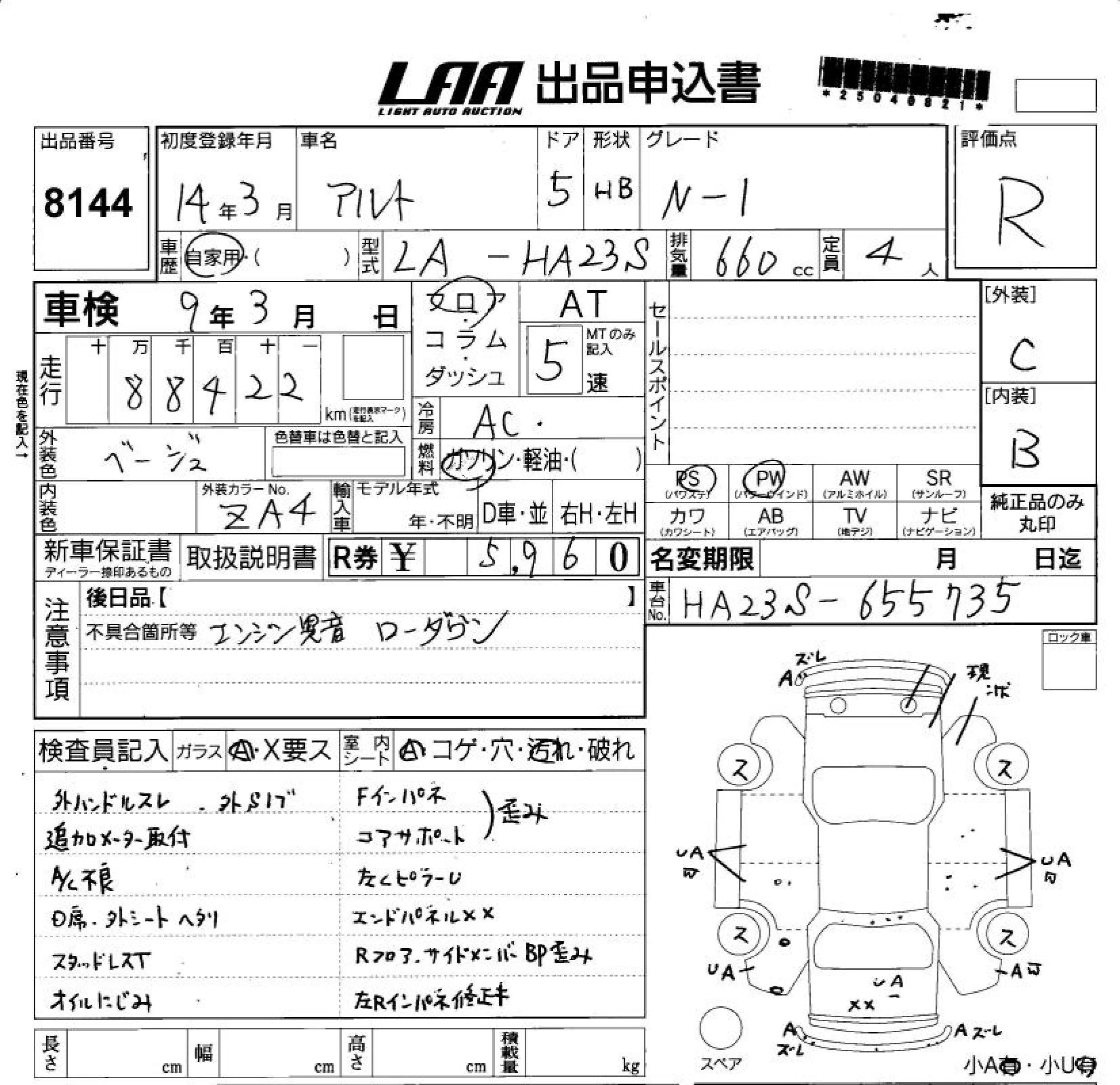 Suzuki ALTO с аукциона Японии LAA Shikoku лот № 8144