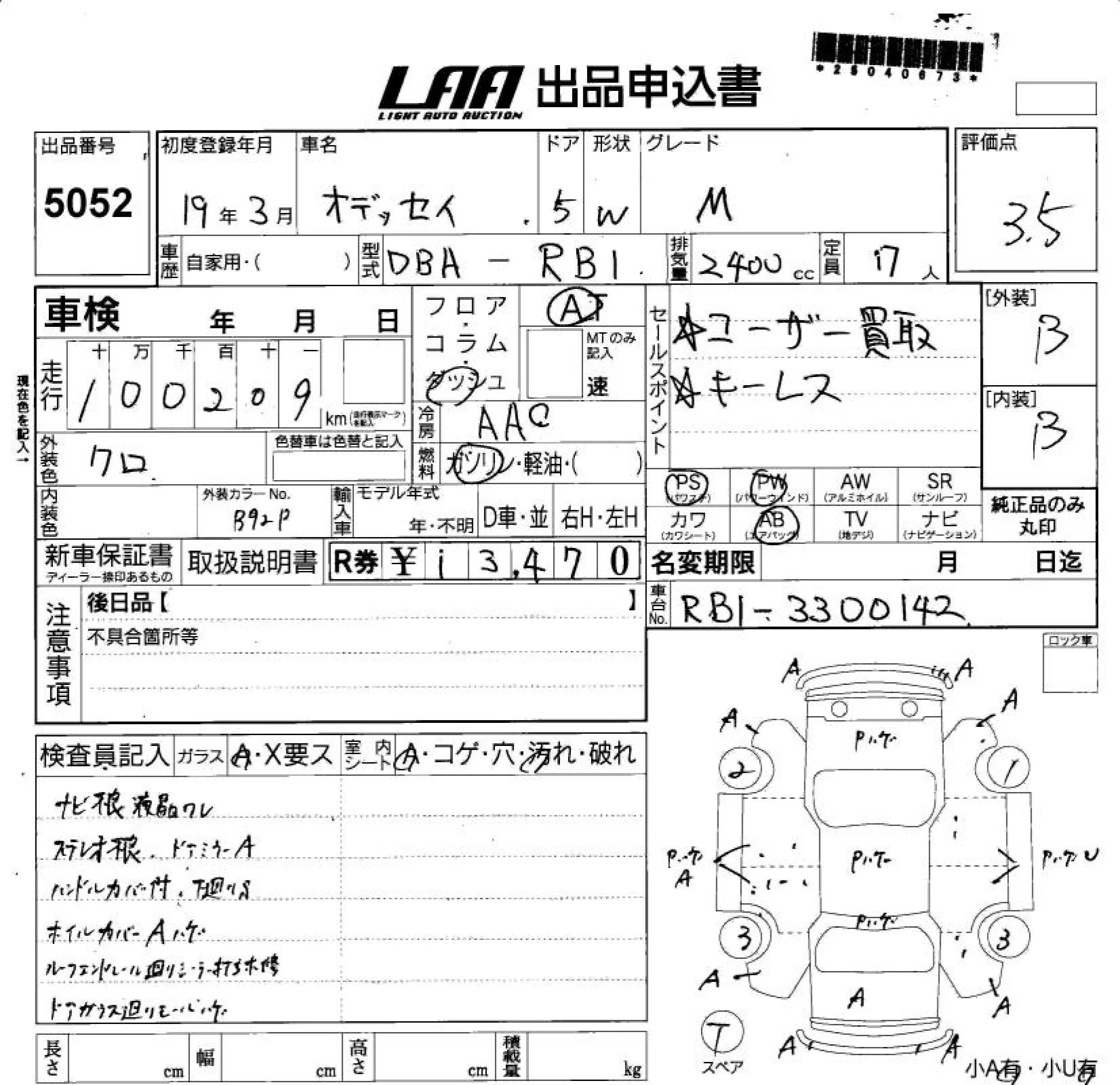 Honda ODYSSEY с аукциона Японии LAA Shikoku лот № 5052