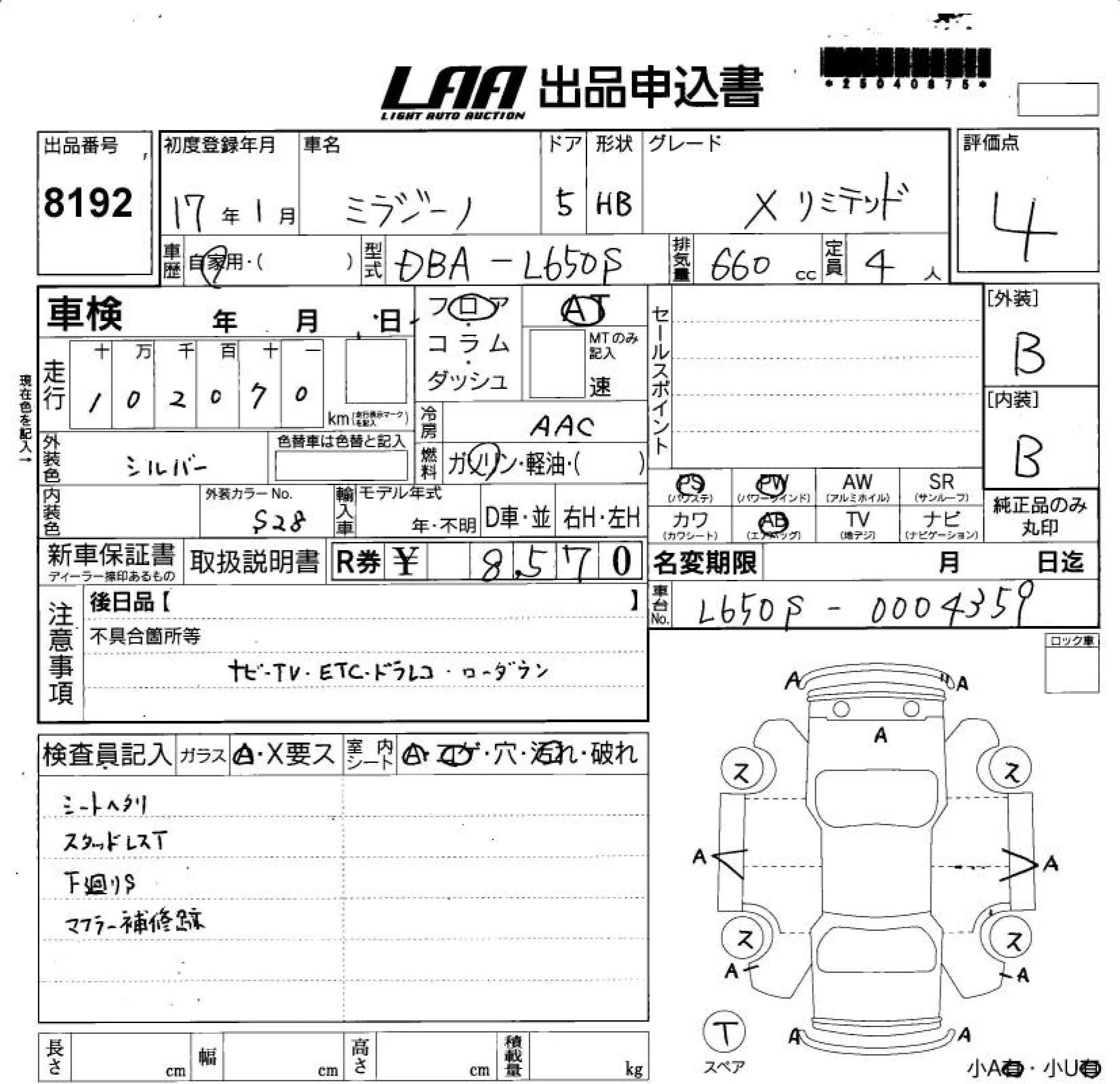 Daihatsu MIRA с аукциона Японии LAA Shikoku лот № 8192