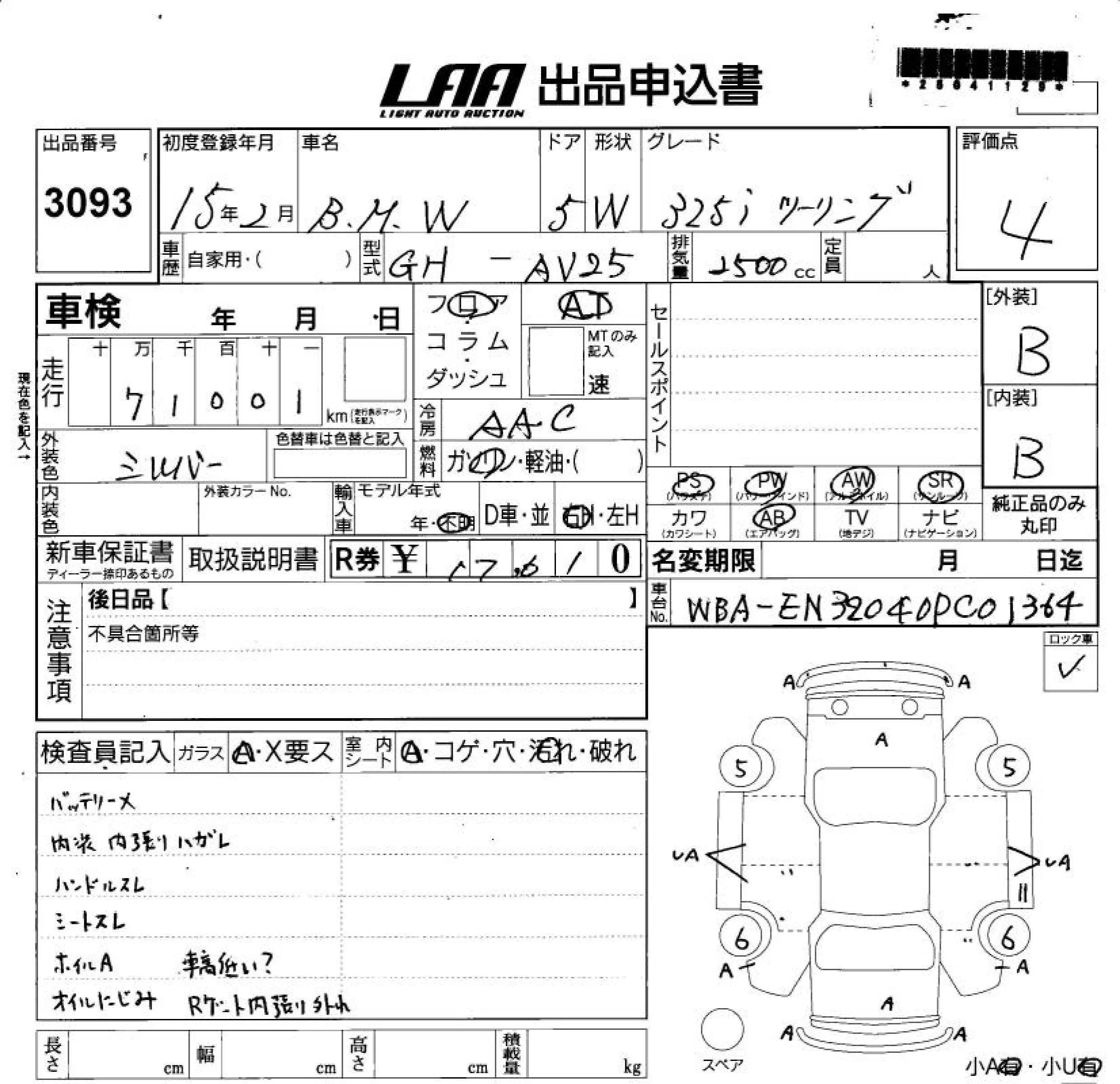 BMW 3-Series с аукциона Японии LAA Shikoku лот № 3093