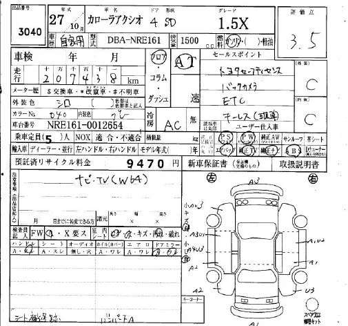 Toyota COROLLA AXIO с аукциона Японии IAA Osaka лот № 3040
