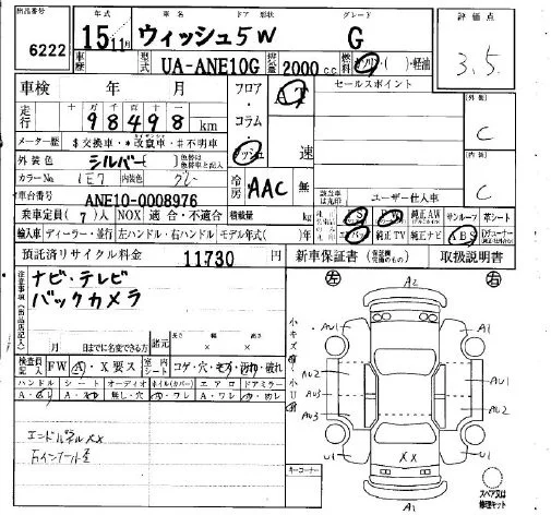 Toyota WISH с аукциона Японии IAA Osaka лот № 6222