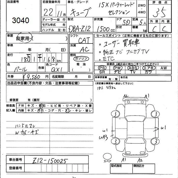 Nissan CUBE с аукциона Японии JU Kumamoto лот № 3040