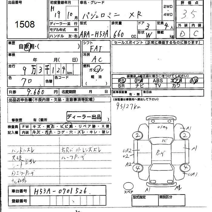 Mitsubishi PAJERO MINI с аукциона Японии JU Kumamoto лот № 1508