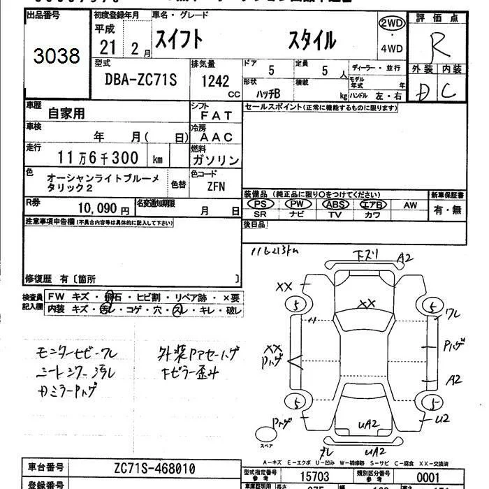 Suzuki SWIFT с аукциона Японии JU Kumamoto лот № 3038