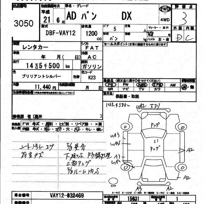 Nissan AD с аукциона Японии JU Kumamoto лот № 3050