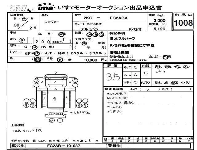 Hino RANGER с аукциона Японии Isuzu Tokyo лот № 1008
