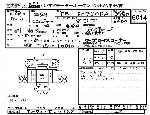 Hino RANGER с аукциона Японии Isuzu Tokyo лот № 6014