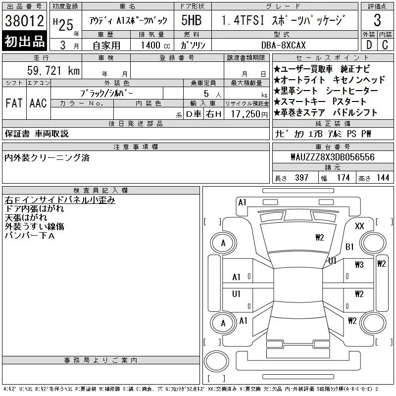Audi A1 с аукциона Японии CAA Chubu лот № 38012