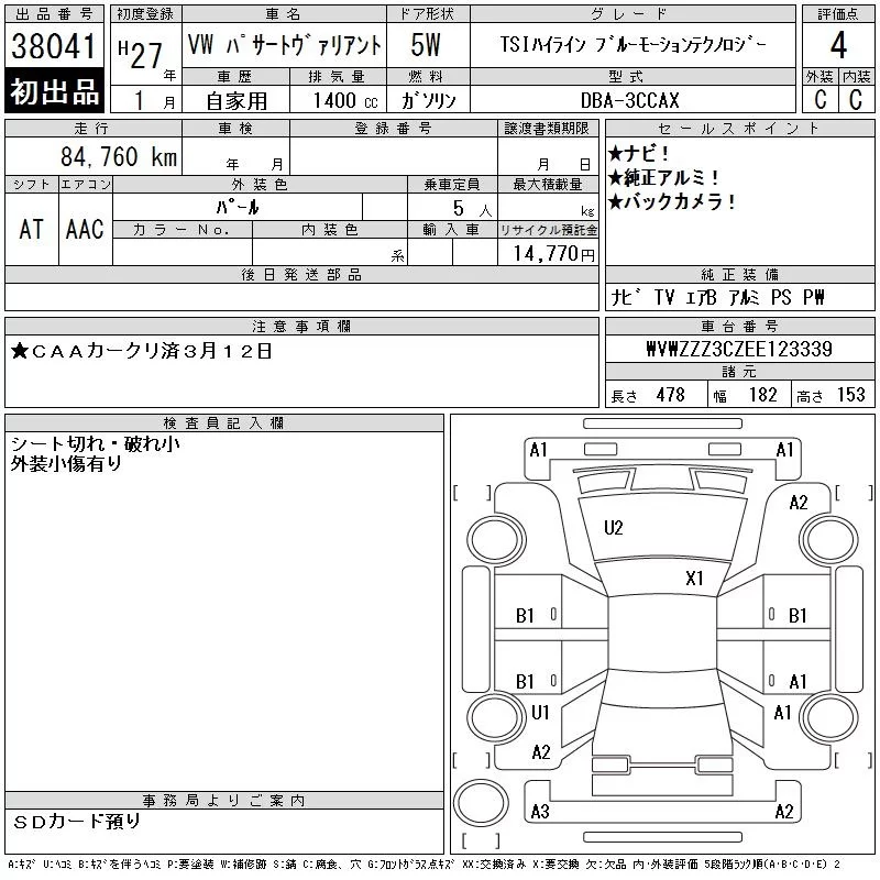 Volkswagen PASSAT VARIANT с аукциона Японии CAA Chubu лот № 38041