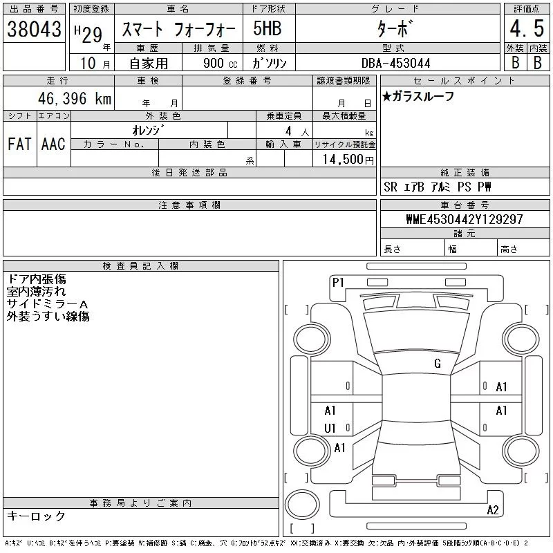 Smart FORFOUR с аукциона Японии CAA Chubu лот № 38043