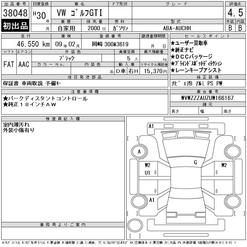 Volkswagen Golf с аукциона Японии CAA Chubu лот № 38048
