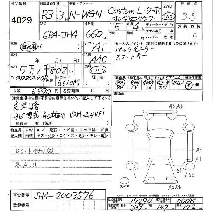 Honda N WGN с аукциона Японии JU Ishikawa лот № 4029