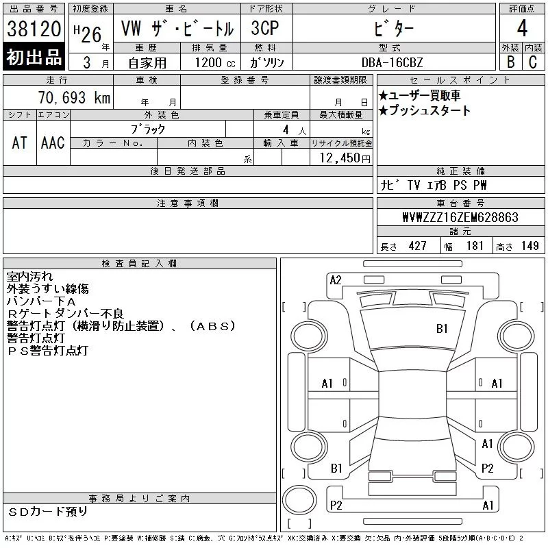 Volkswagen THE BEETLE с аукциона Японии CAA Chubu лот № 38120