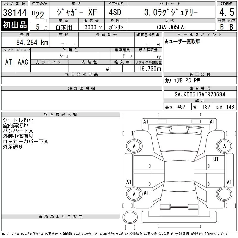 Jaguar XF SERIES с аукциона Японии CAA Chubu лот № 38144