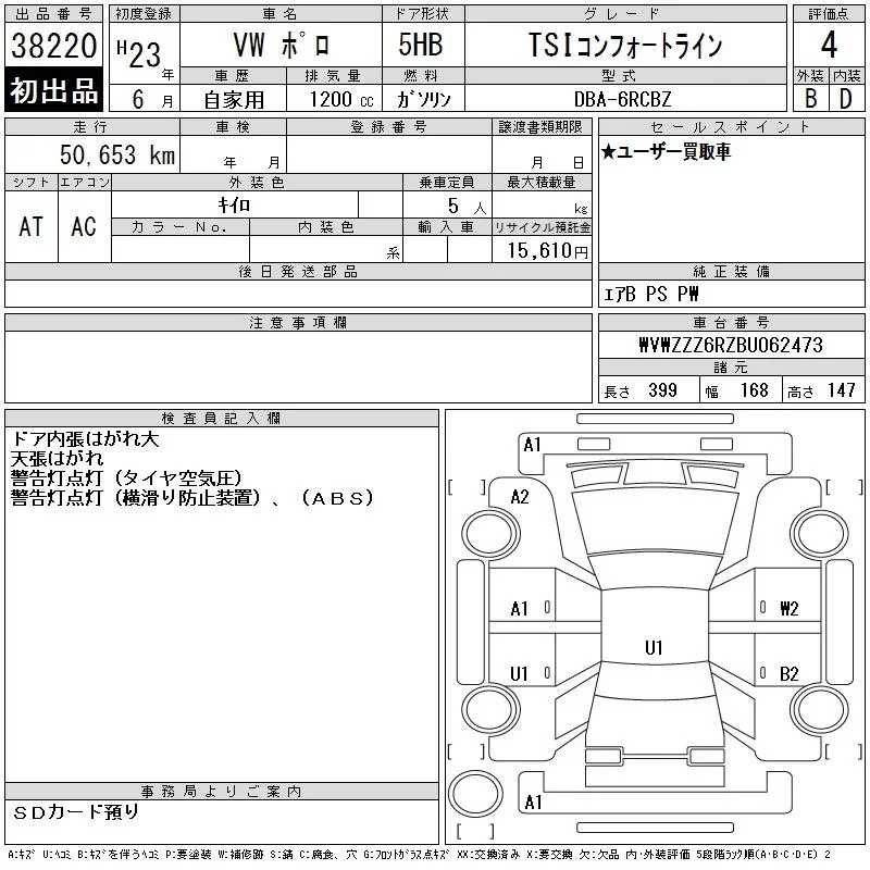 Volkswagen Polo с аукциона Японии CAA Chubu лот № 38220