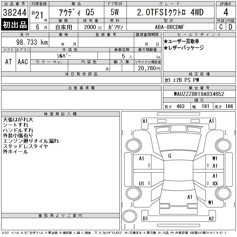 Audi Q5 с аукциона Японии CAA Chubu лот № 38244