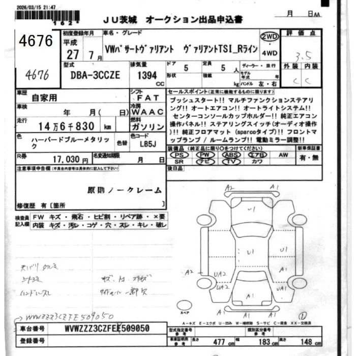 Volkswagen PASSAT VARIANT с аукциона Японии JU Ibaraki лот № 4676