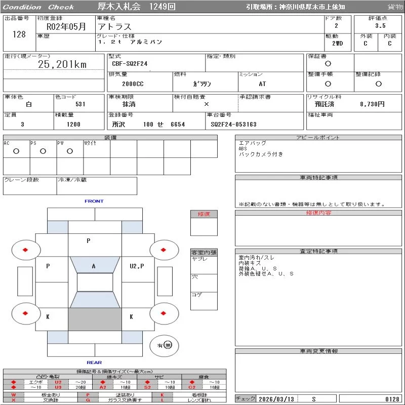 Nissan ATLAS с аукциона Японии ORIX Atsugi Nyusatsu лот № 128