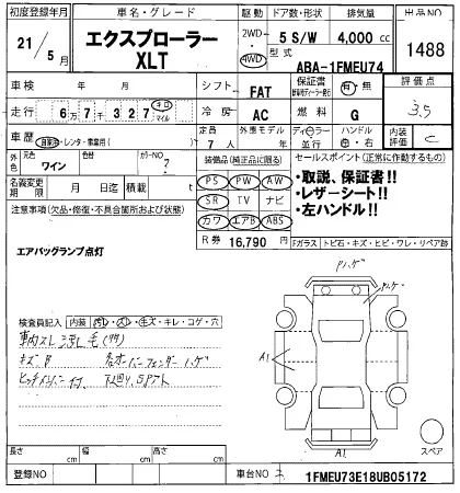 Ford EXPLORER с аукциона Японии HERO лот № 1488