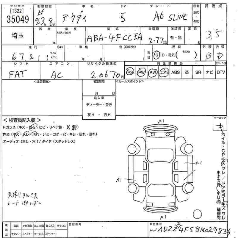 Audi A6 с аукциона Японии MIRIVE Saitama лот № 35049