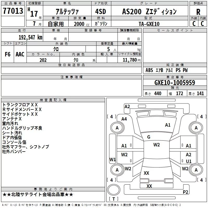 Toyota ALTEZZA с аукциона Японии TAA Chubu лот № 77013