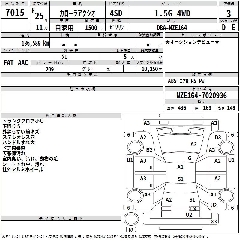 Toyota COROLLA AXIO с аукциона Японии TAA Hokkaido лот № 7015