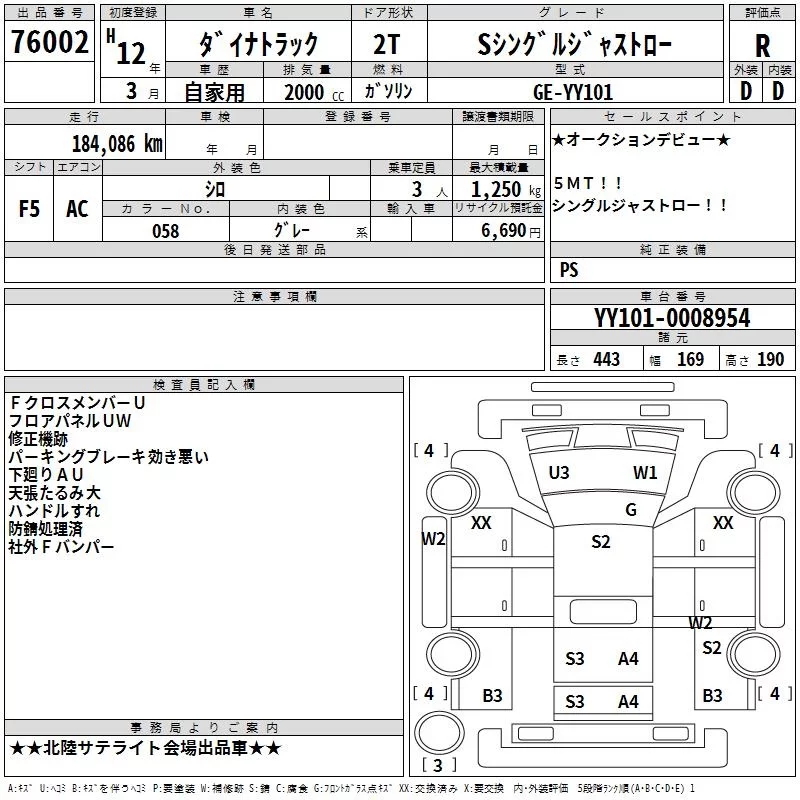 Аукционный лист  DYNA лот № 76002