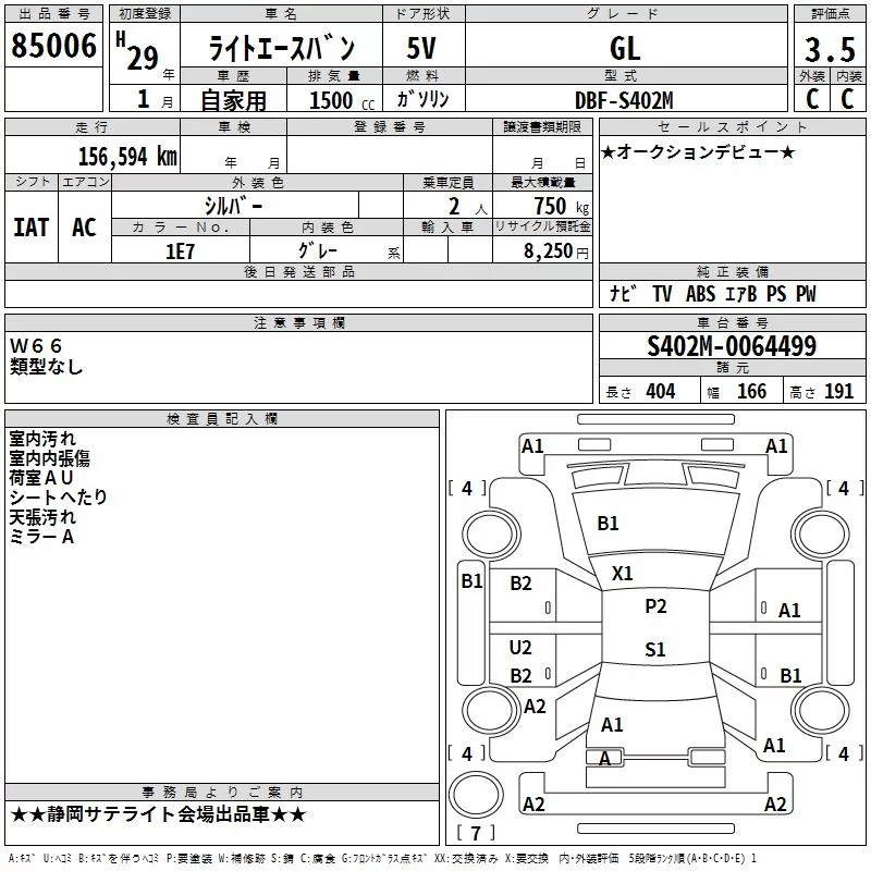 Toyota LITE ACE VAN с аукциона Японии TAA Chubu лот № 85006