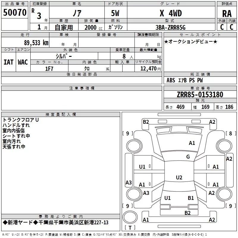 Toyota NOAH с аукциона Японии TAA Kanto лот № 50070