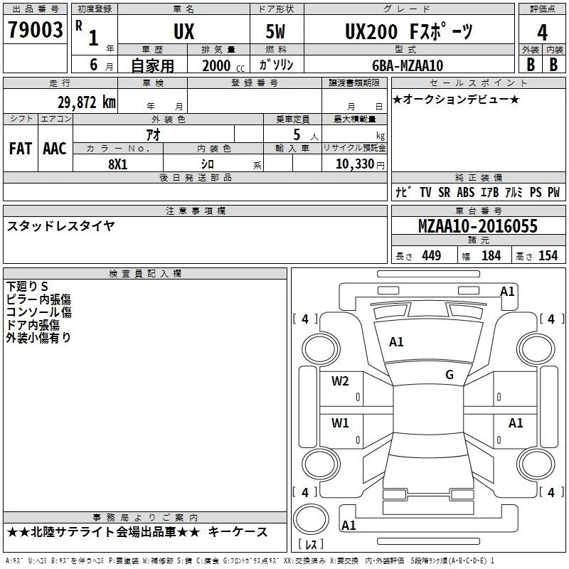 Lexus UX с аукциона Японии TAA Chubu лот № 79003