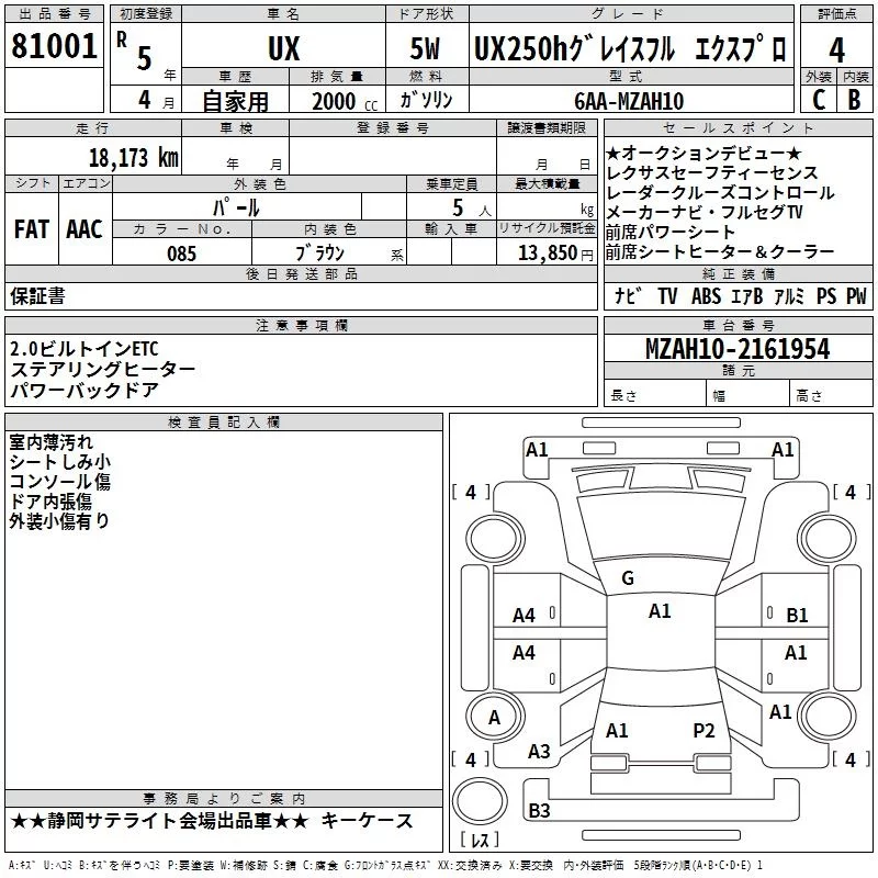 Lexus UX с аукциона Японии TAA Chubu лот № 81001
