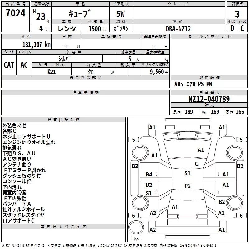 Nissan CUBE с аукциона Японии TAA Hokkaido лот № 7024